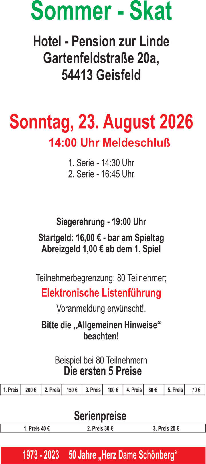 Veranstaltungsort Hotel – Pension zur Linde Gartenfeldstraße 20a 54413 Geisfeld