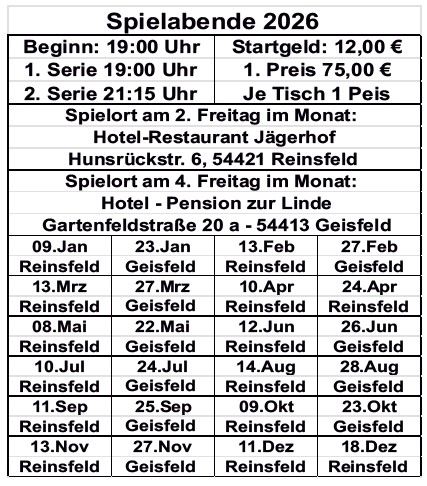 Veranstaltungsort Hotel Restaurant Jägerhof Hunsrückstraße 6 54421 Reinsfeld
